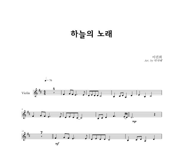 '하늘의 노래' 의 다른 악보형식