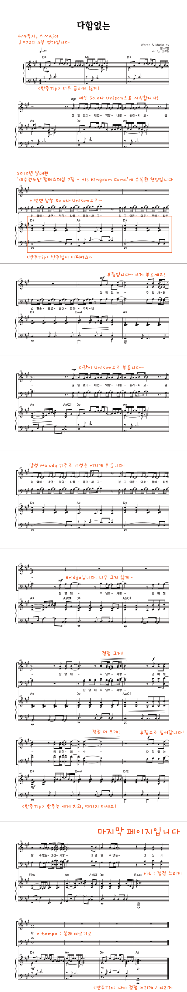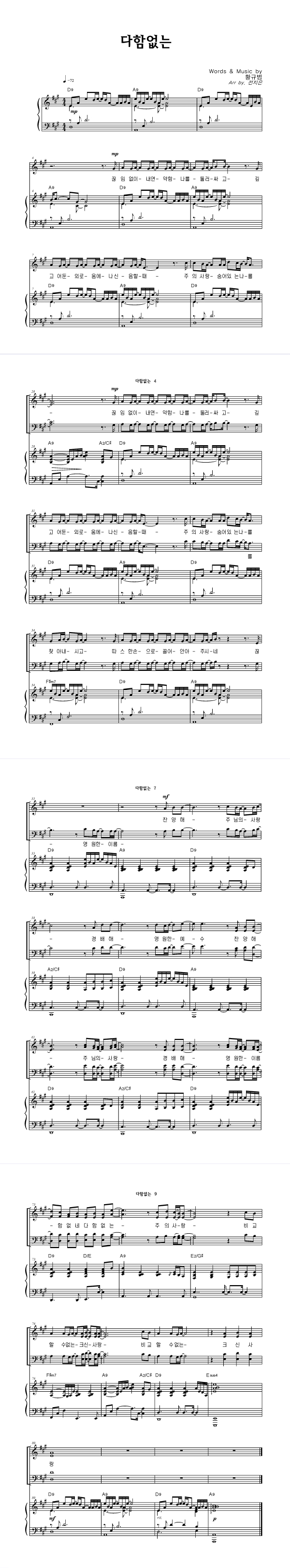 | 다함없는 | 성가 3부 + 피아노 반주 |