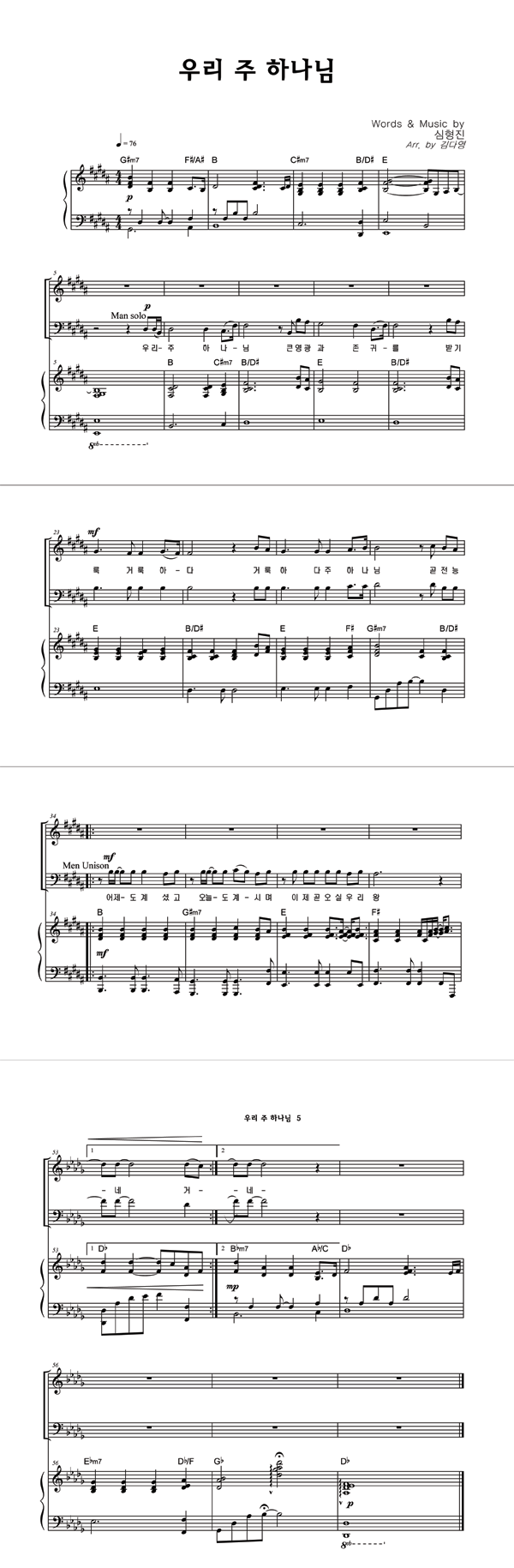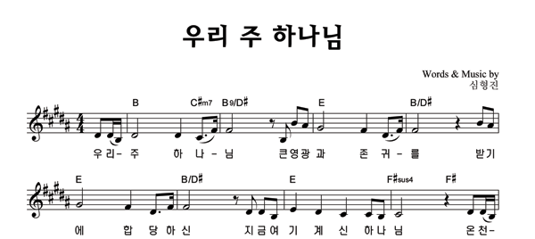 | 우리 주 하나님 | 성가 2부 + 피아노 반주 |