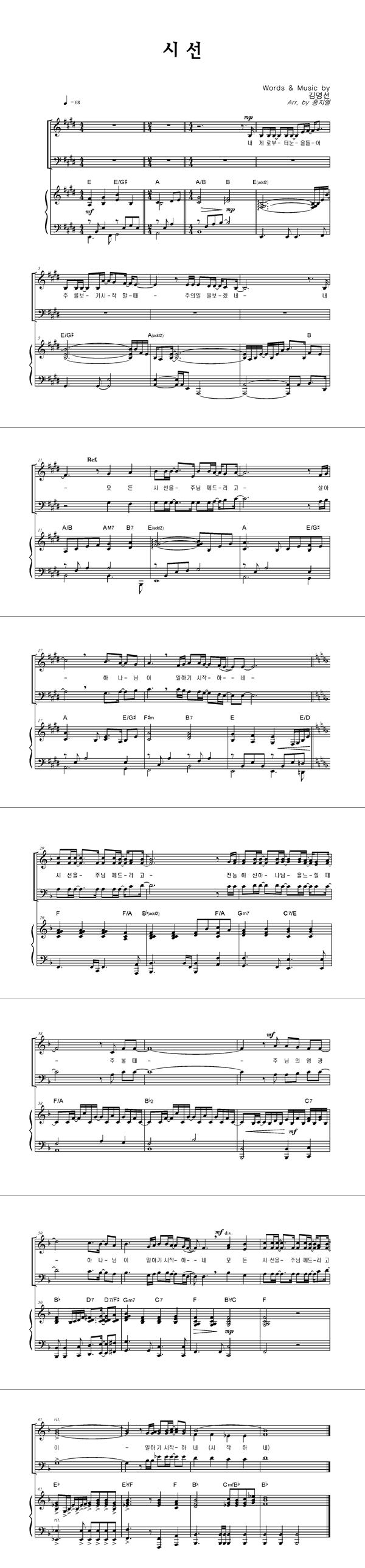 | 시선 | 성가 2부 + 피아노 반주 |