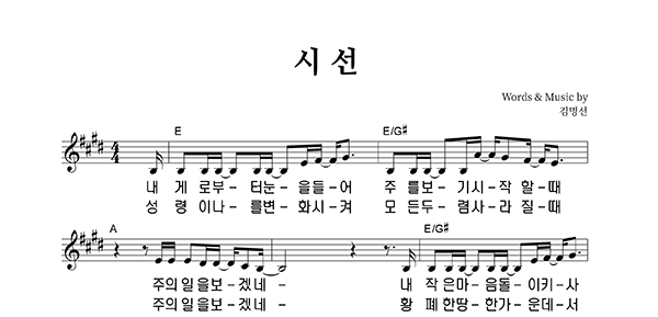 | 시선 | 성가 4부 + 피아노 반주 |