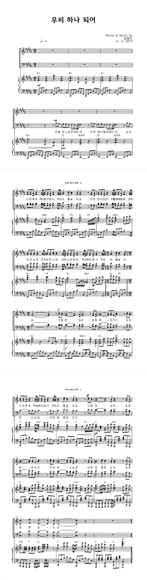 | 우리 하나되어 | 성가 2부 + 피아노 반주 |
