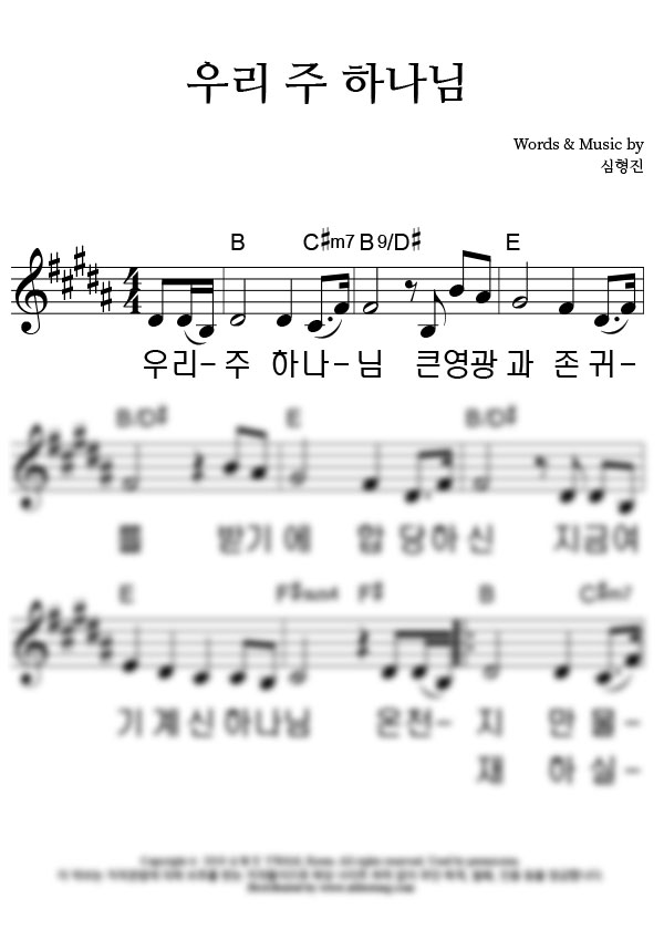 | 우리 주 하나님 | 성가 4부 + 피아노 반주 |