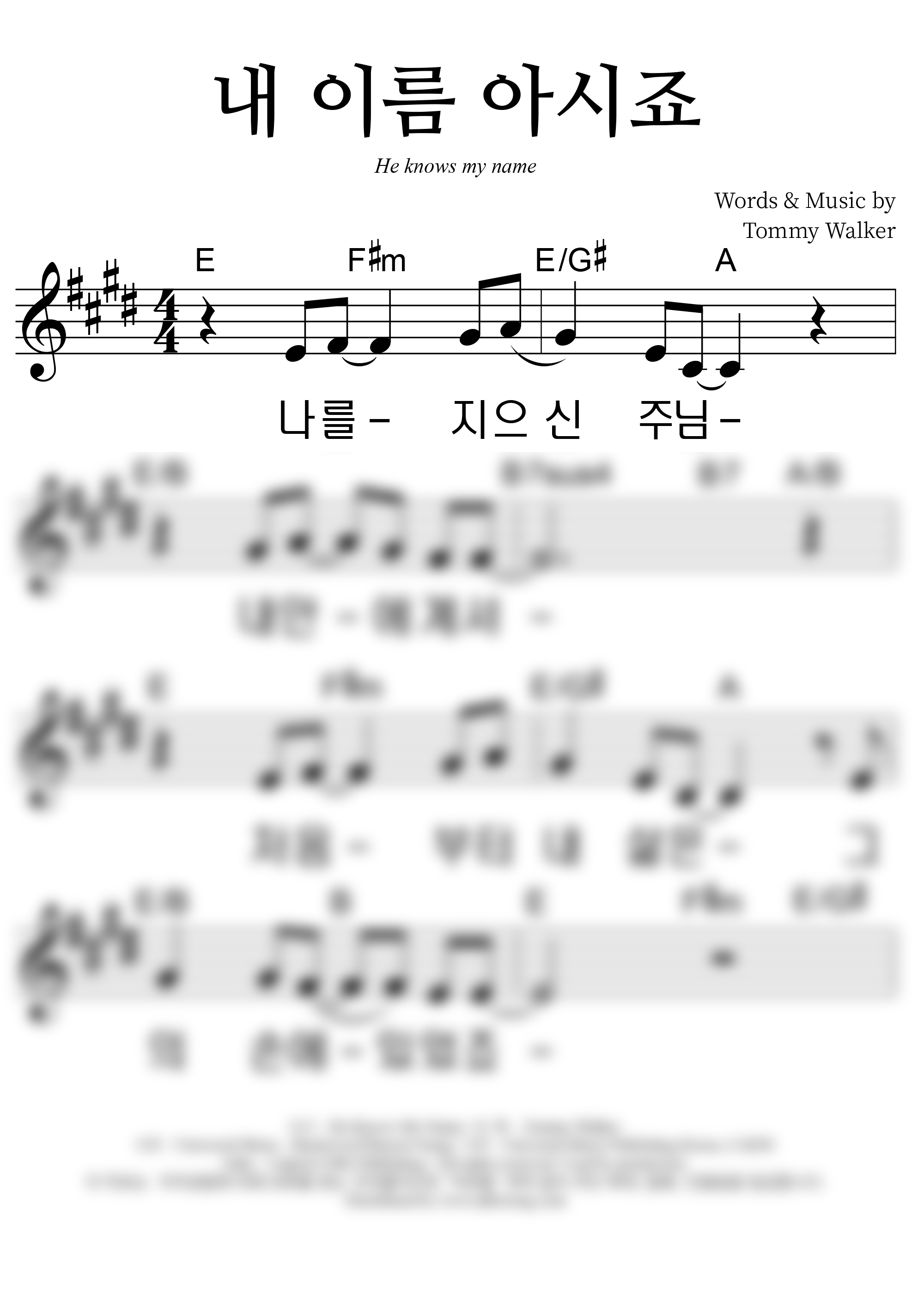 | 내 이름 아시죠 | 성가 4부 + 피아노 반주 |