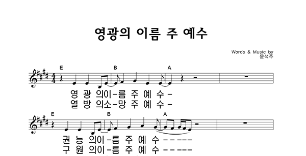 | 영광의 이름 주 예수 큰글씨 | 단선 |