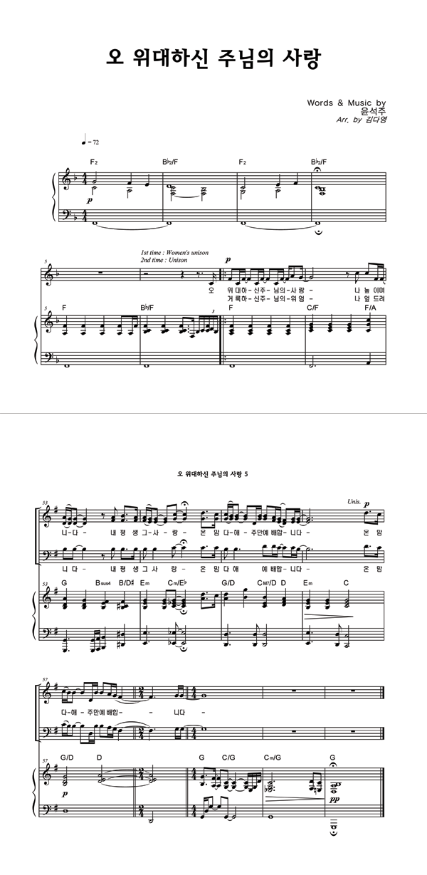 | 오 위대하신 주님의 사랑 | 성가 2부 + 피아노 반주 |