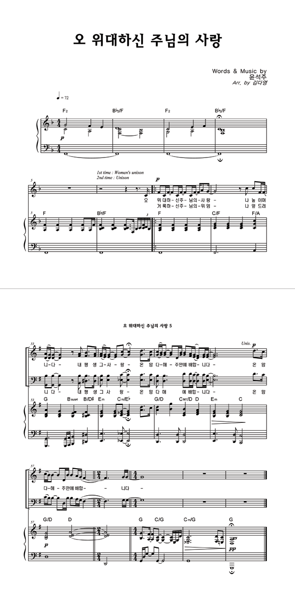 | 오 위대하신 주님의 사랑 | 성가 3부 + 피아노 반주 |