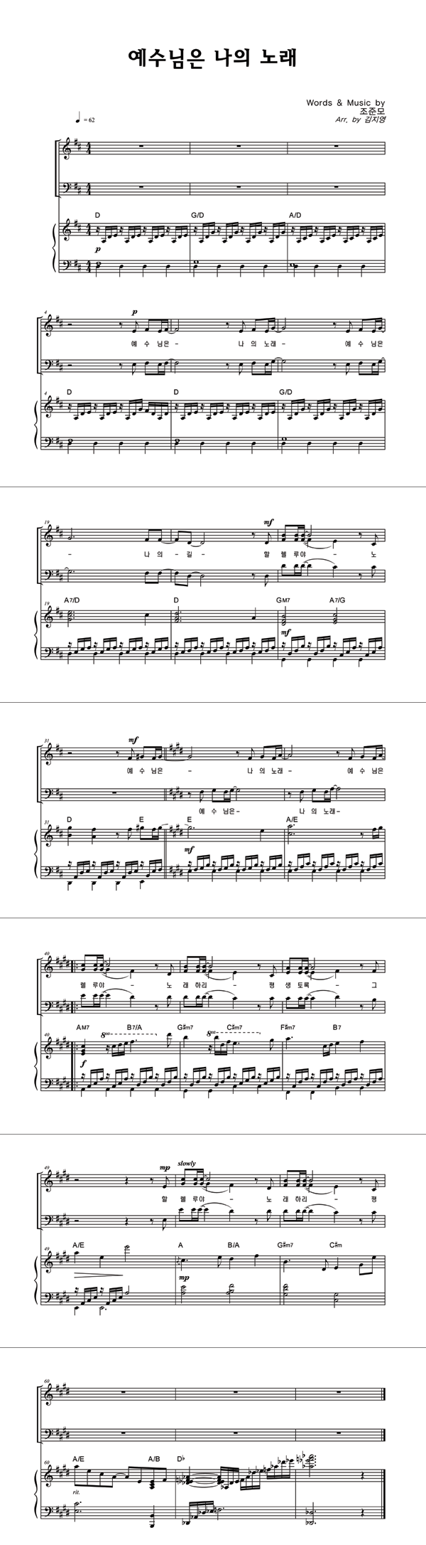 | 예수님은 나의 노래 | 성가 3부 + 피아노 반주 |