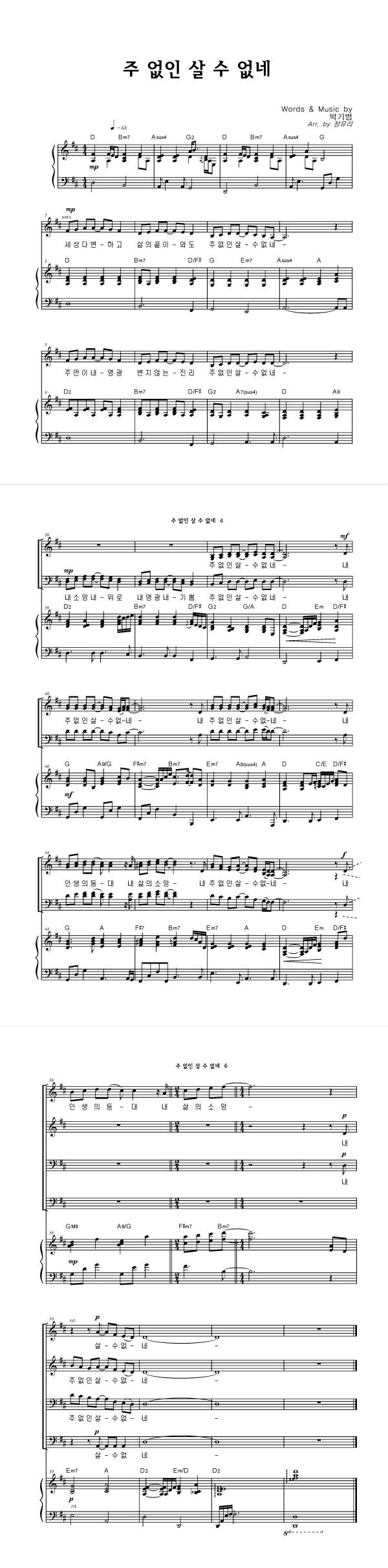 | 주 없인 살 수 없네 | 성가 3부 + 피아노 반주 |