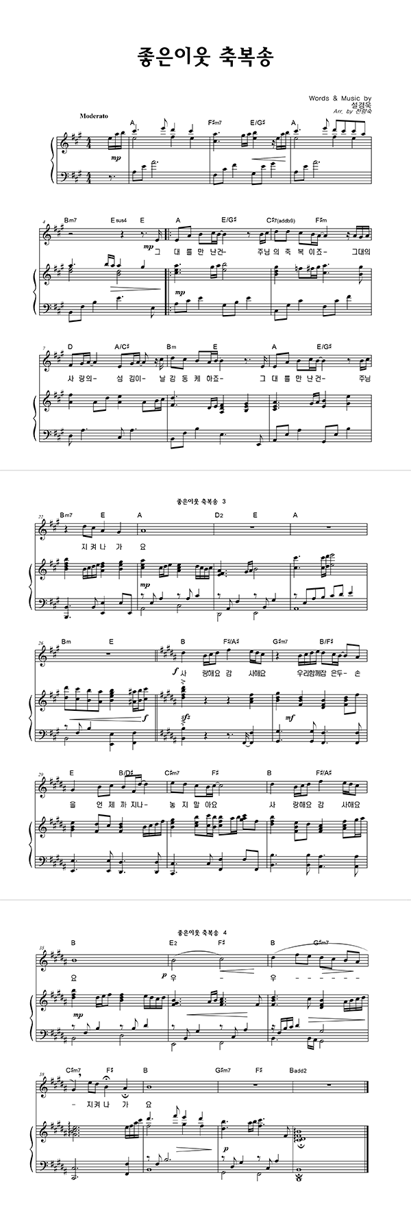 | 축복송 | 성가 4부 + 피아노 반주 |