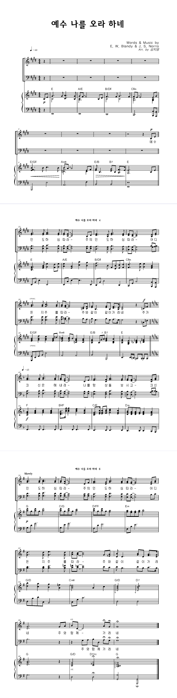 | 예수 나를 오라 하네 | 성가 3부 + 피아노 반주 |