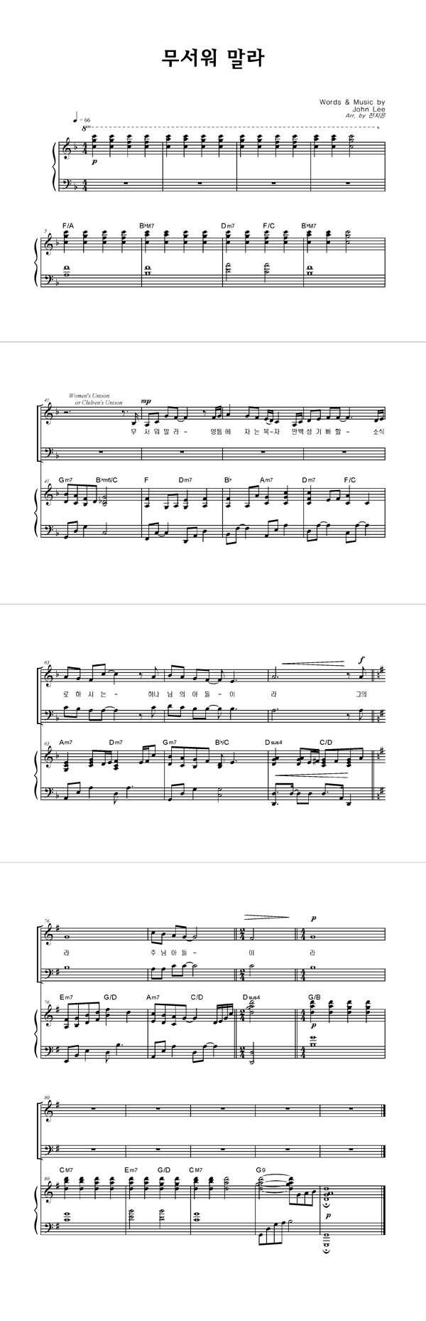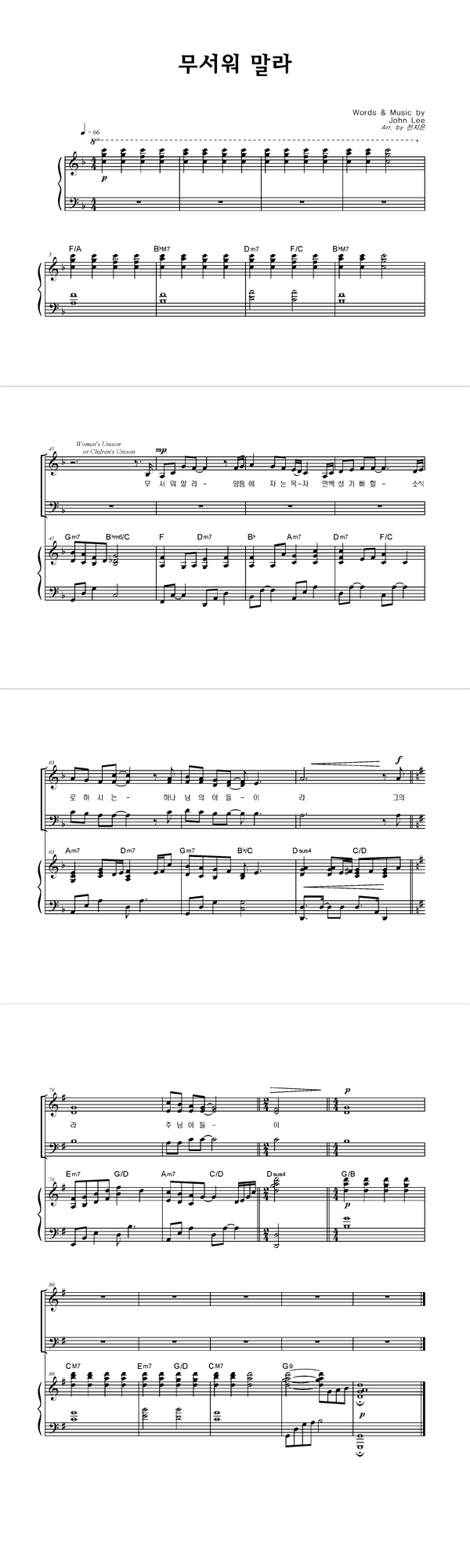 | 무서워 말라 | 성가 3부 + 피아노 반주 |