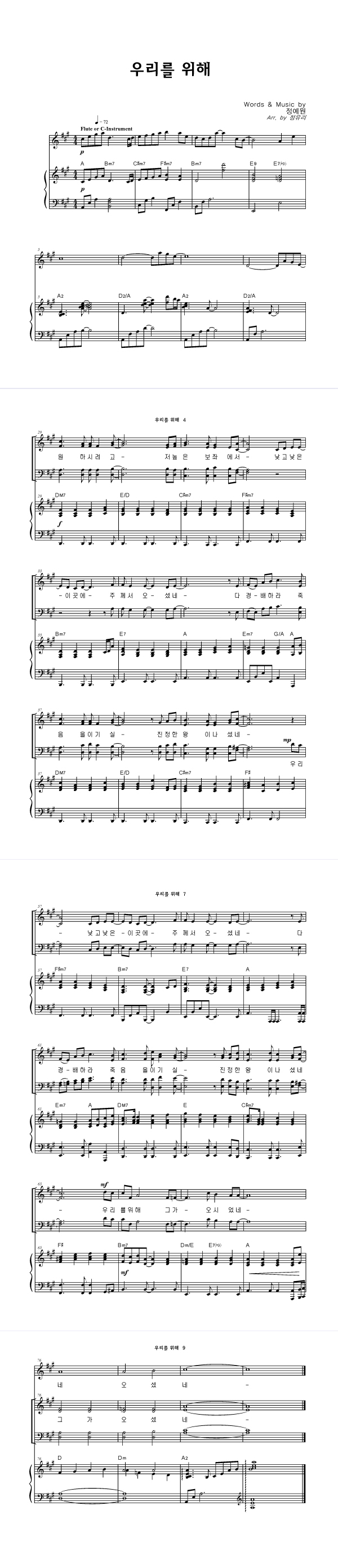 | 우리를 위해 | 성가 2부 + 피아노 반주 |