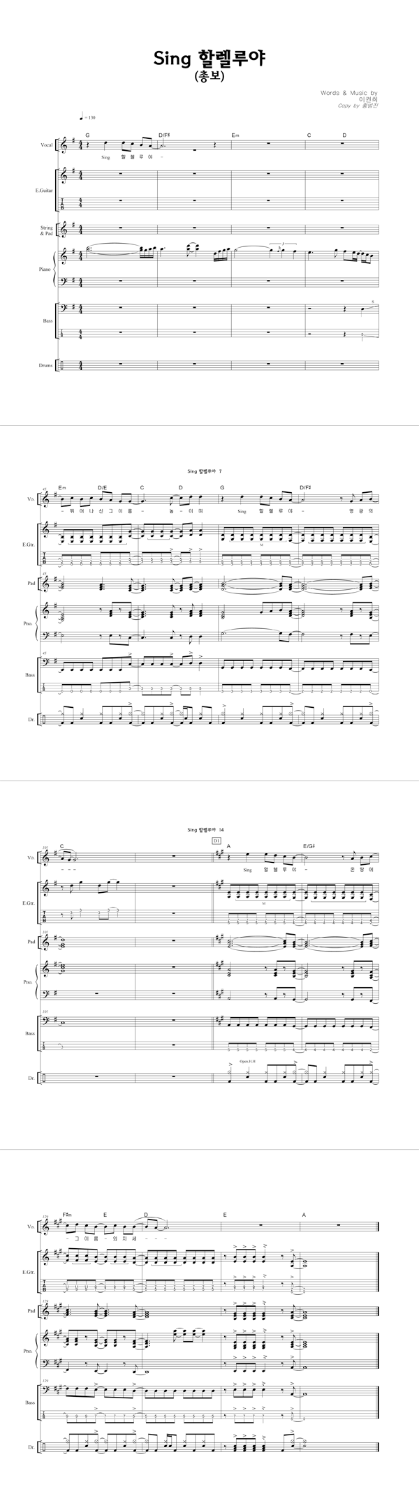 | Sing 할렐루야 | 성가 4부 + 피아노 반주 |