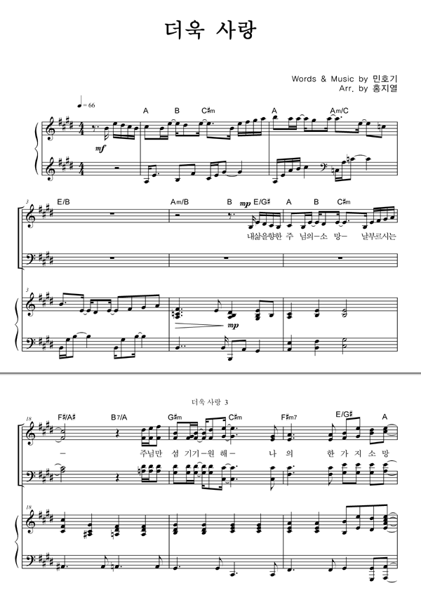 | 더욱 사랑 | 성가 4부 + 피아노 반주 |