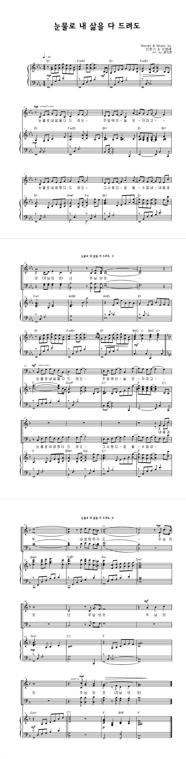 | 눈물로 내 삶을 다 드려도 | 성가 4부 + 피아노 반주 |