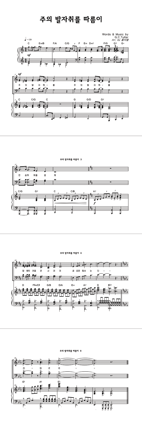 | 주의 발자취를 따름이 | 성가 3부 + 피아노 반주 |