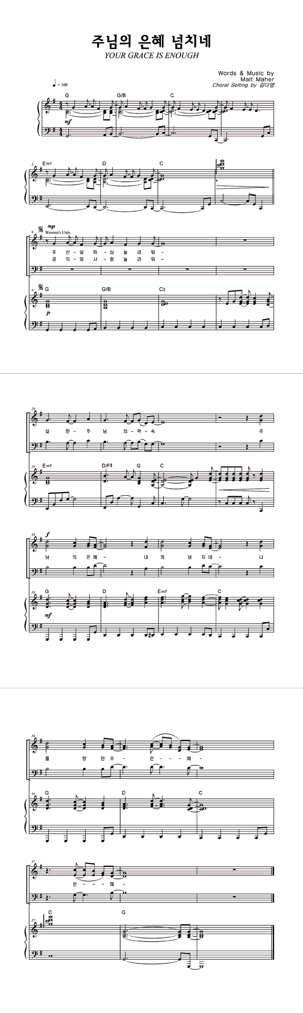 | 주님만으로 | 성가 2부 + 피아노 반주 |