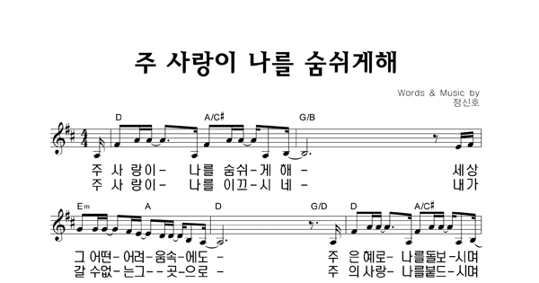 | 주 사랑이 나를 숨쉬게해 | 성가 4부 + 피아노 반주 |