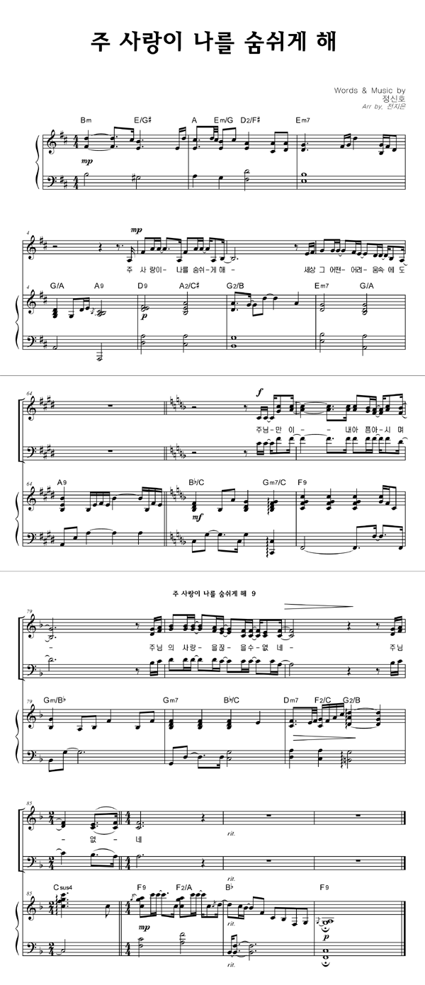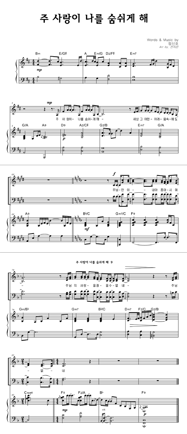 | 주 사랑이 나를 숨쉬게해 | 성가 3부 + 피아노 반주 |