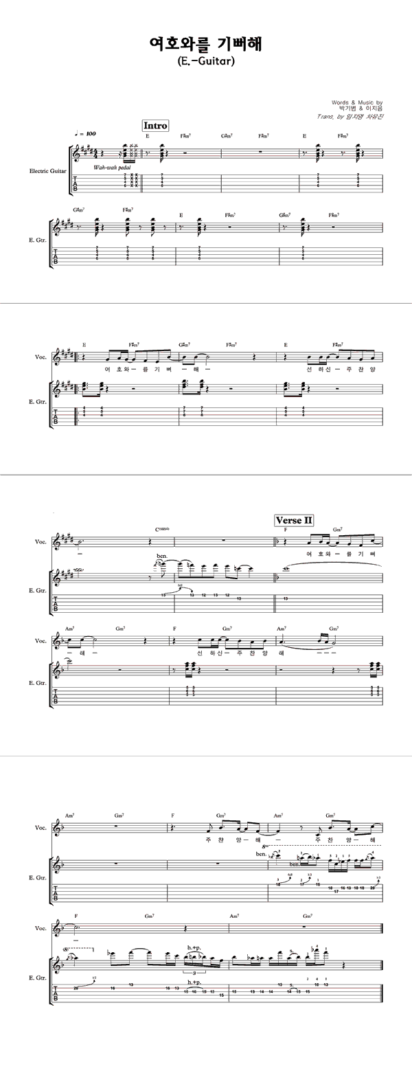 | 여호와를 기뻐해 | 성가 3부 + 피아노 반주 |