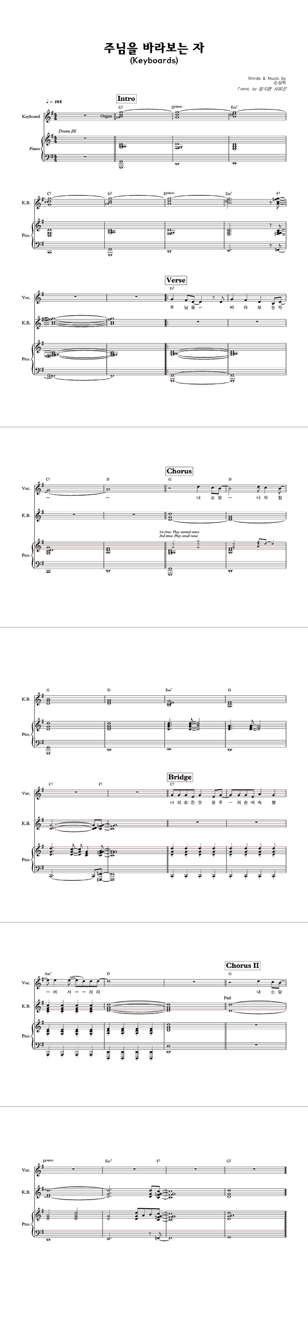 | 주 없인 살 수 없네 | 성가 2부 + 피아노 반주 |