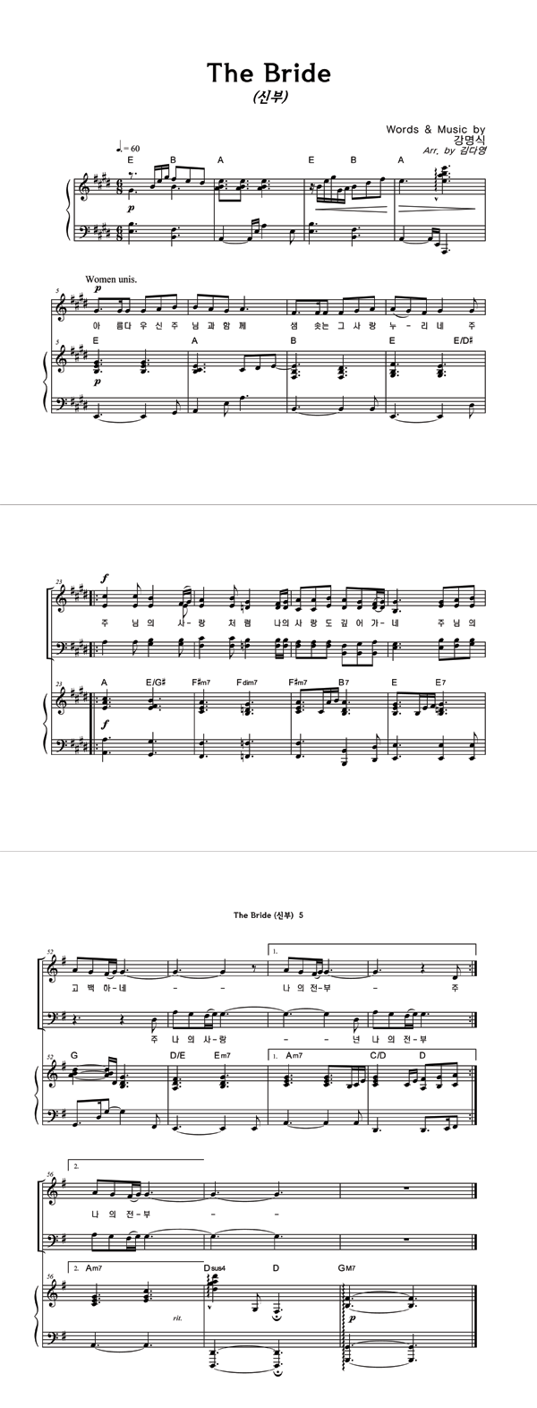 | The Bride(신부) | 성가 3부 + 피아노 반주 |