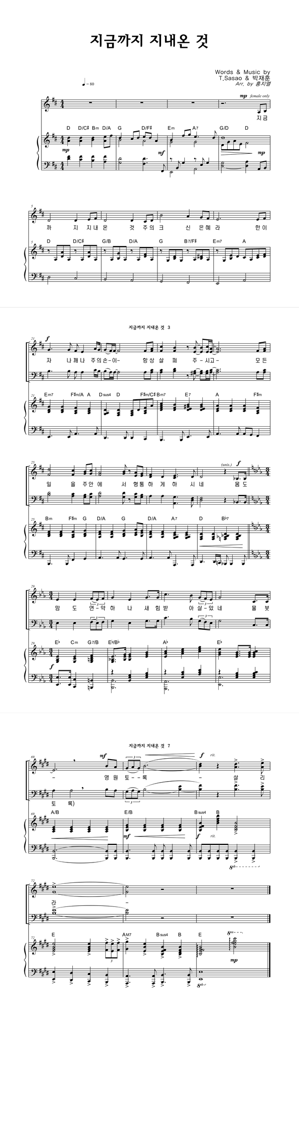 | 지금까지 지내온 것 | 성가 2부 + 피아노 반주 |