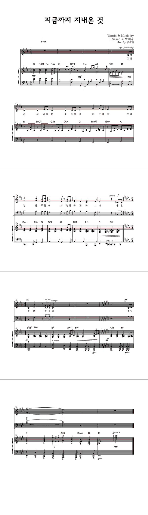 | 지금까지 지내온 것 | 성가 4부 + 피아노 반주 |