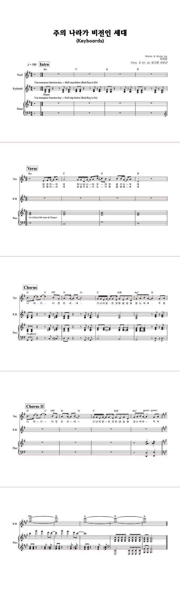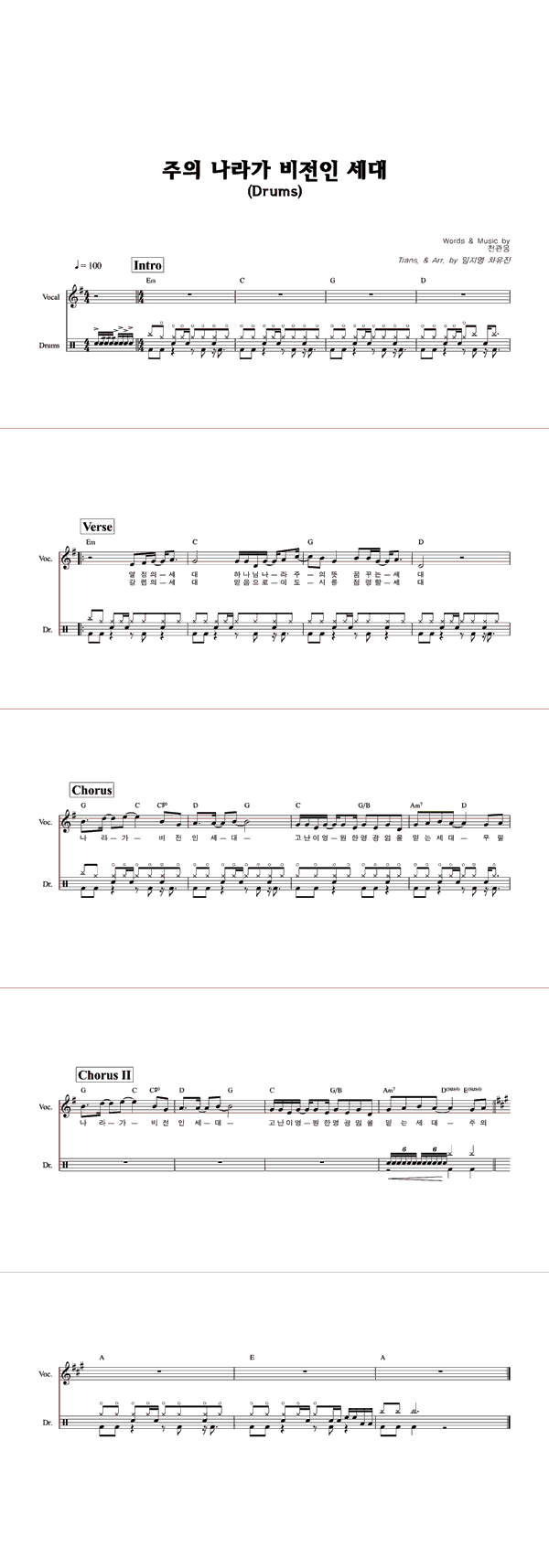'주의 나라가 비전인 세대' 의 다른 악보형식
