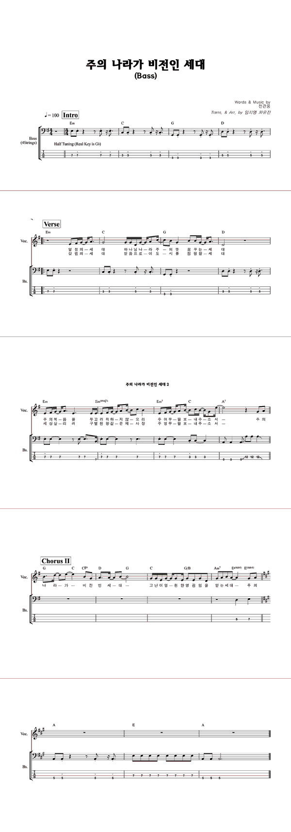 '주의 나라가 비전인 세대' 의 다른 악보형식