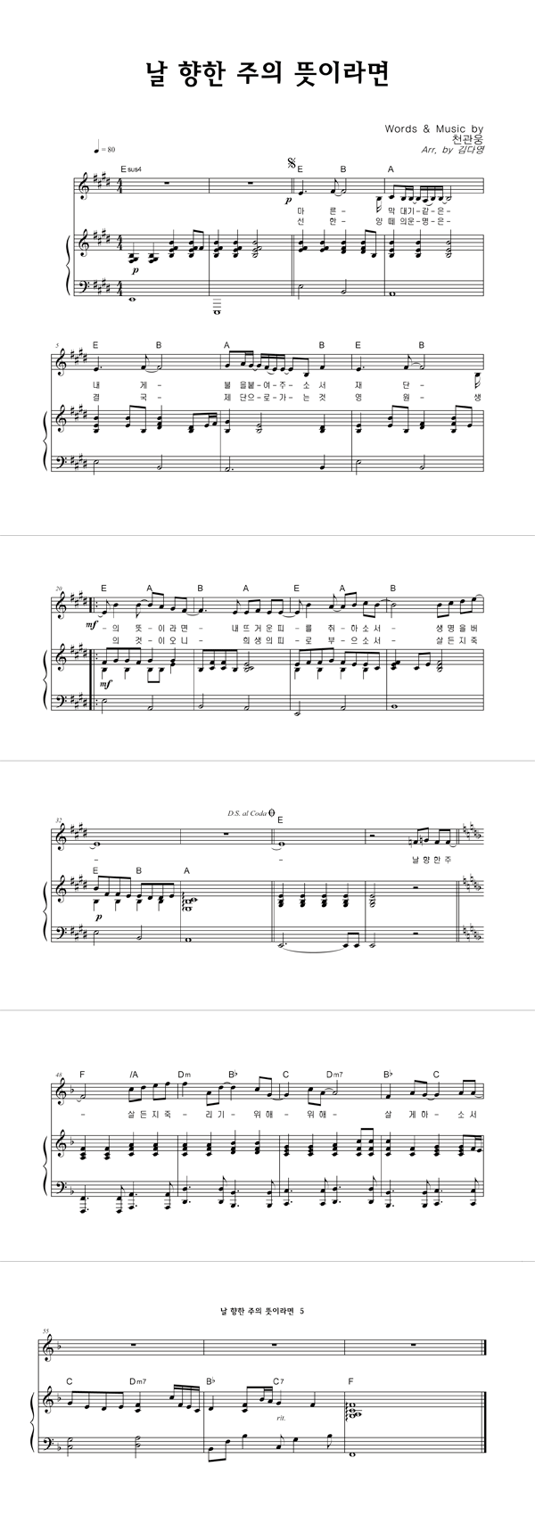 | 날 향한 주의 뜻이라면 | 성가 4부 + 피아노 반주 |