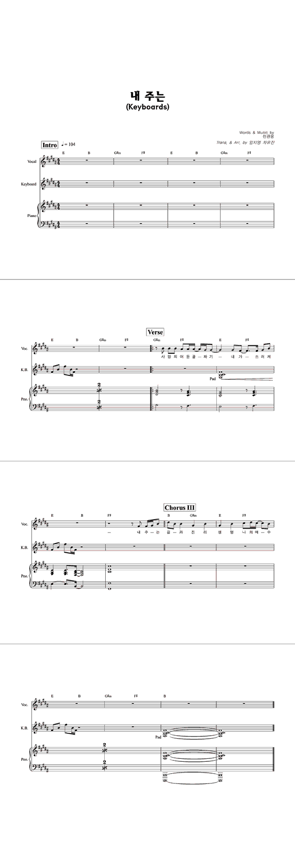 | 나를 보던 나의 눈을 감고 | 성가 3부 + 피아노 반주 |