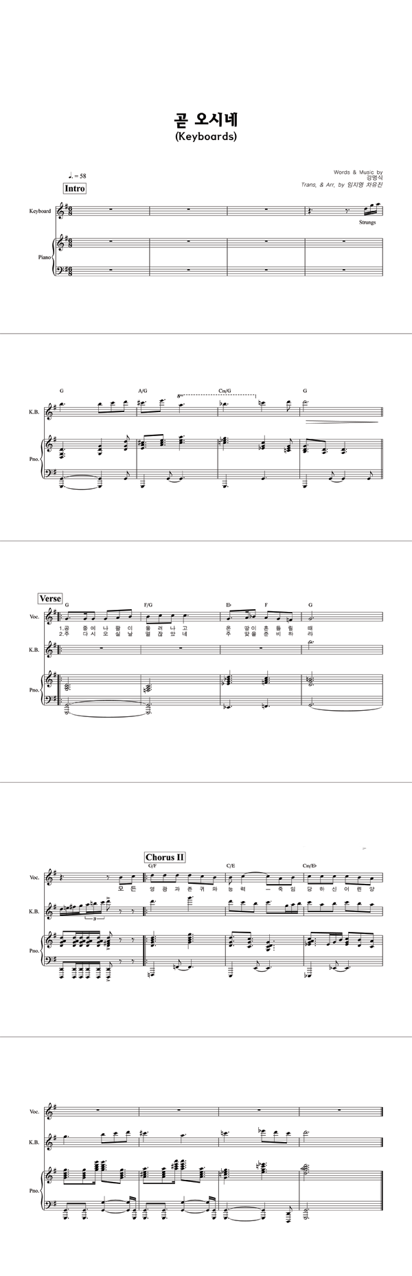 | 곧 오시네 | 성가 4부 + 피아노 반주 |