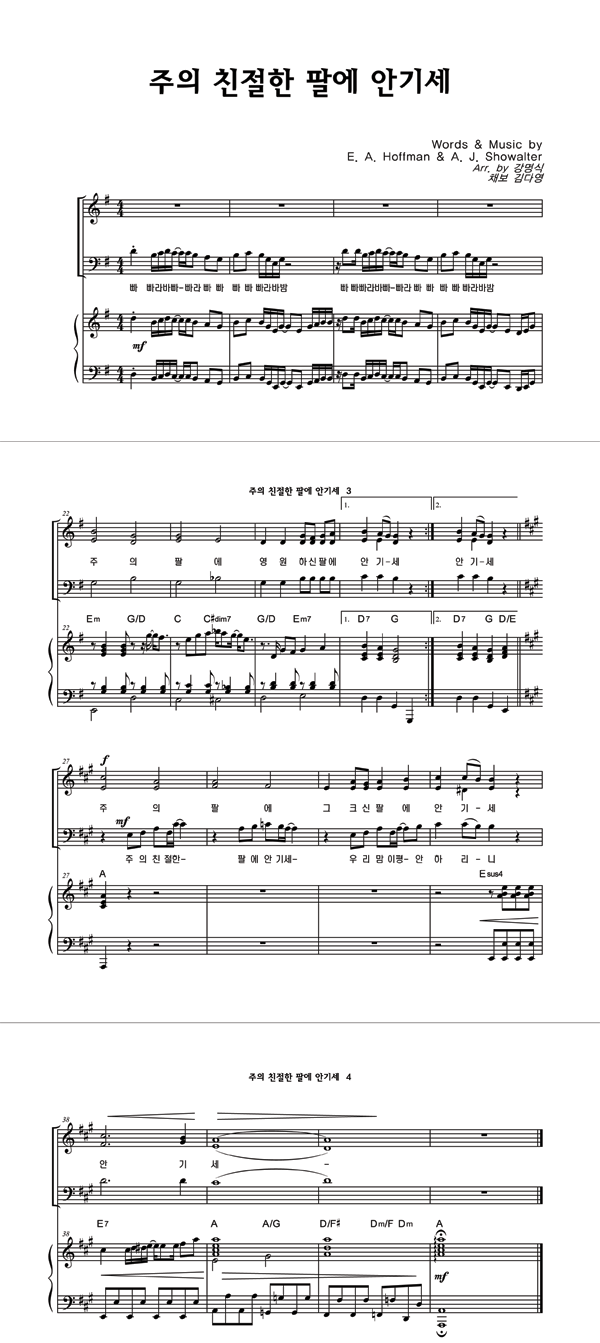 | 주의 친절한 팔에 안기세 | 성가 4부 + 피아노 반주 |
