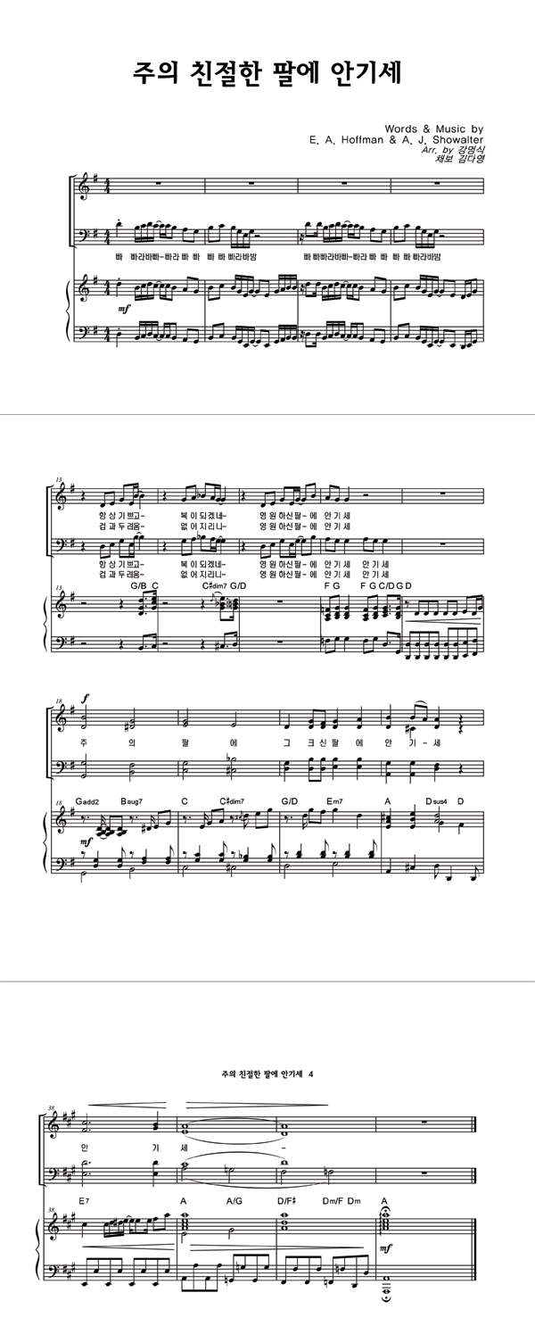 | 주의 친절한 팔에 안기세 | 성가 3부 + 피아노 반주 |
