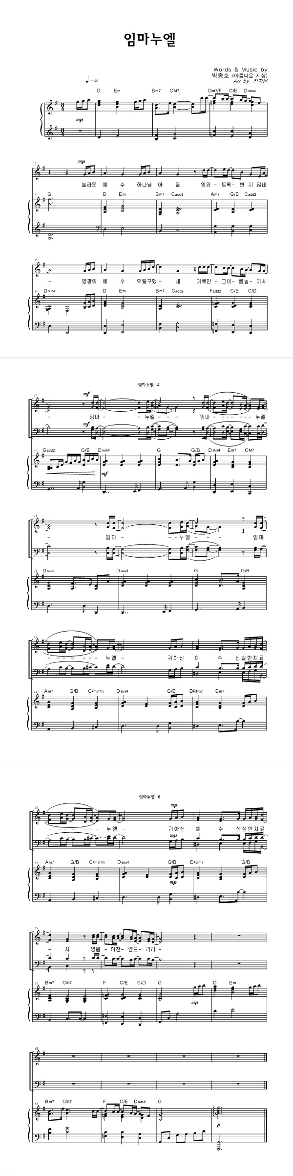 | 임마누엘 | 성가 4부 + 피아노 반주 |
