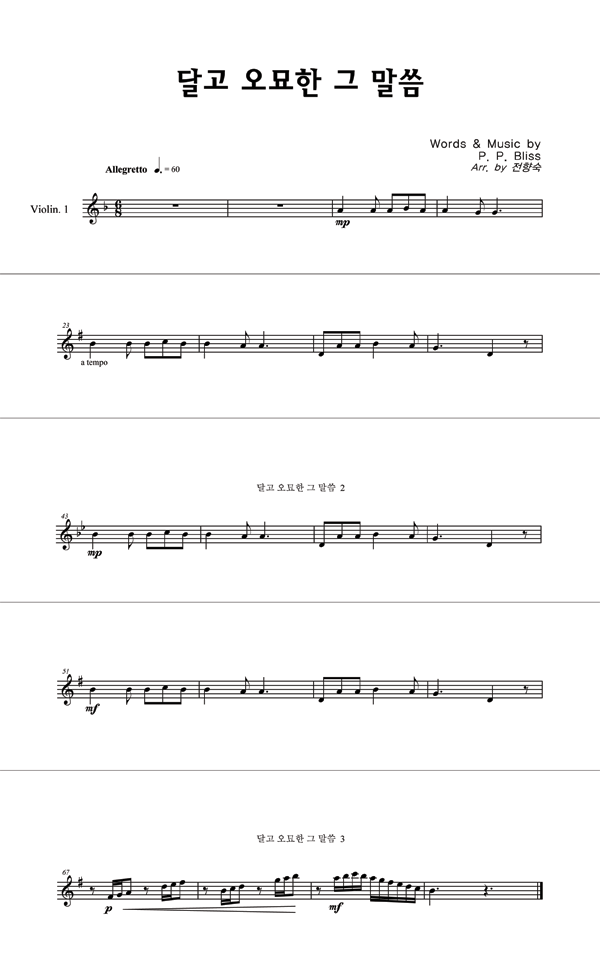 '달고 오묘한 그 말씀 (찬송가 200장)' 의 다른 악보형식