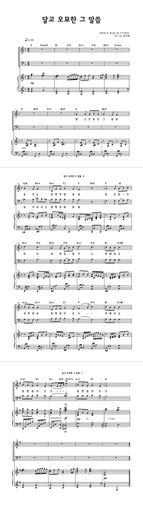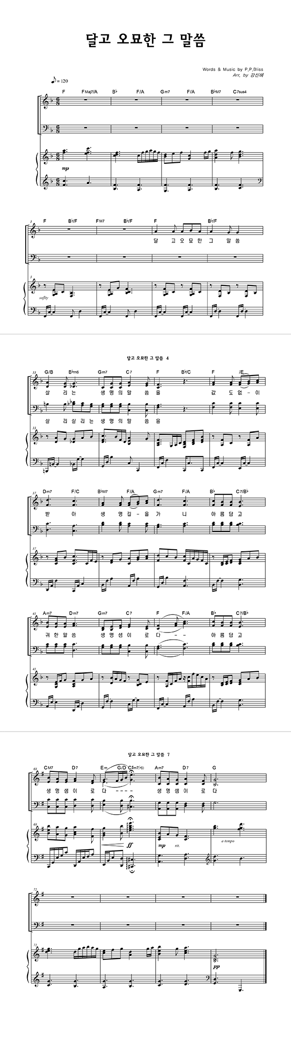 | 달고 오묘한 그 말씀 (찬송가 200장) | 성가 4부 + 피아노 반주 |