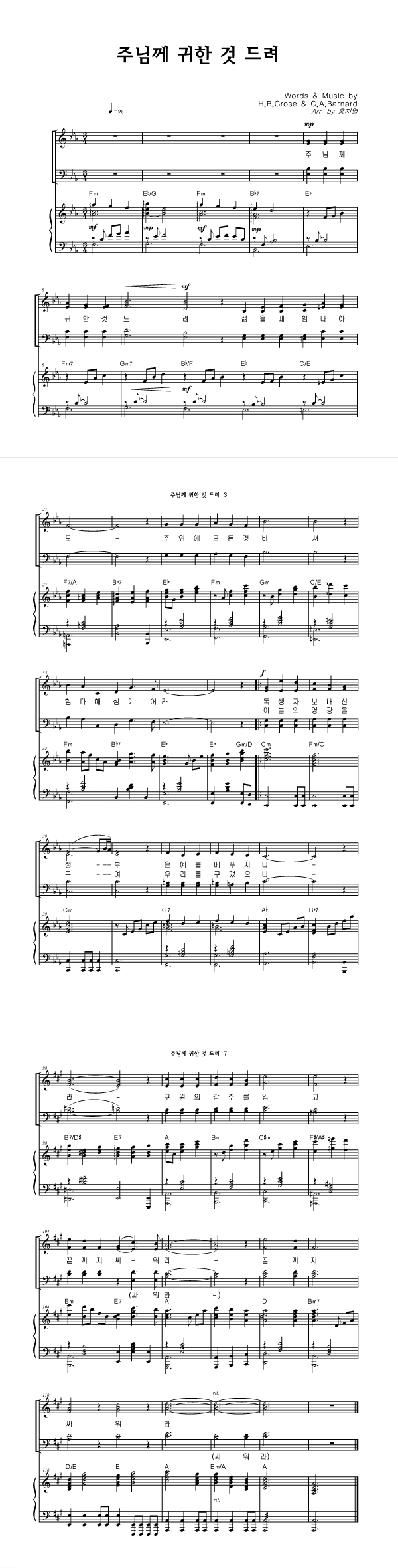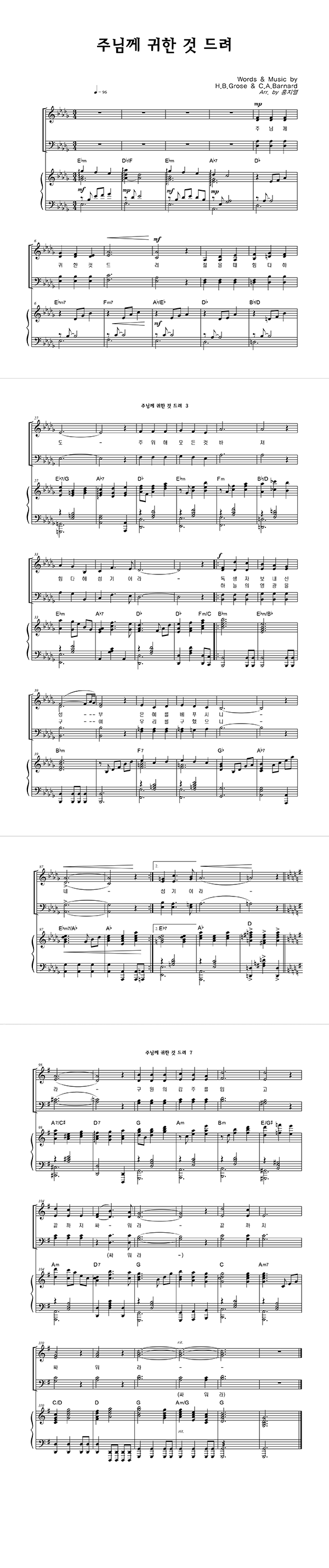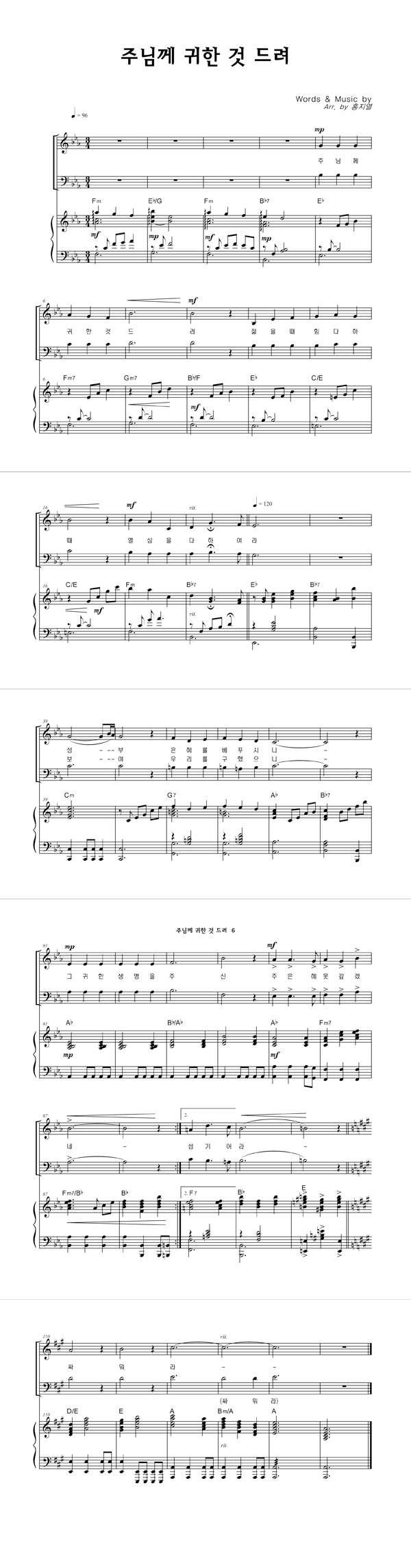 | 주님께 귀한 것 드려 (찬송가 575장) | 성가 4부 + 피아노 반주 |