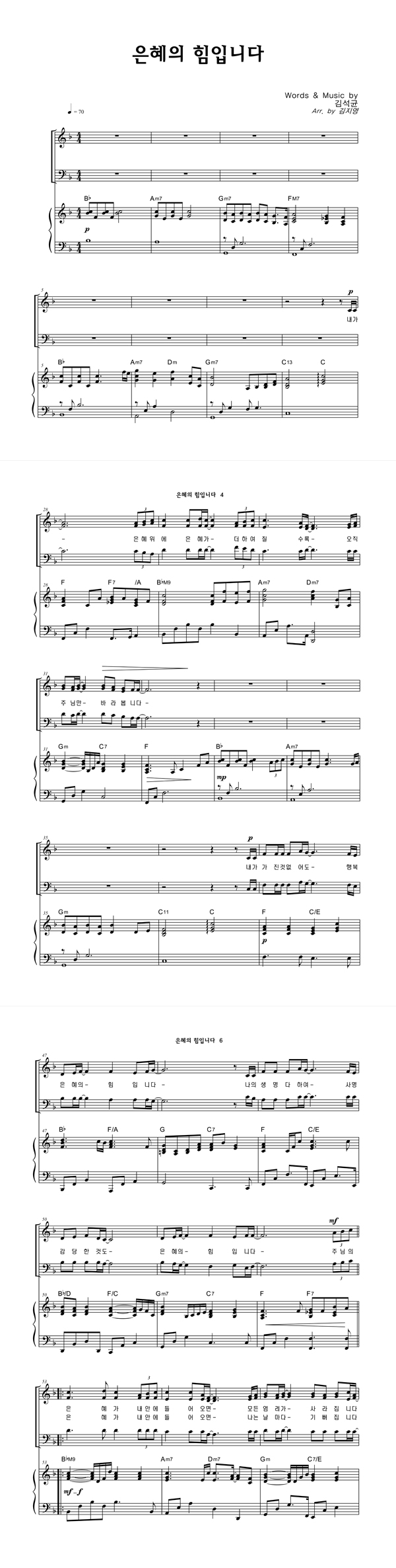 | 은혜의 힘입니다 | 성가 3부 + 피아노 반주 |
