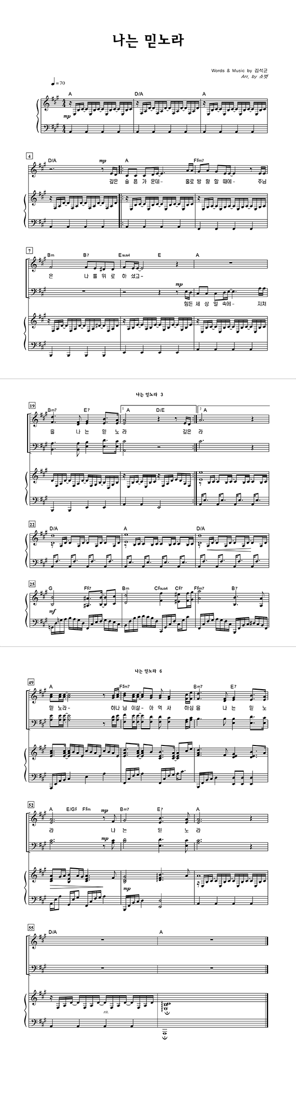 | 나는 믿노라 | 성가 2부 + 피아노 반주 |