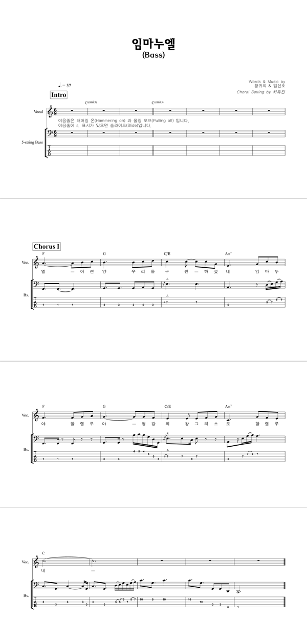 | 임마누엘 | 성가 4부 + 피아노 반주 |