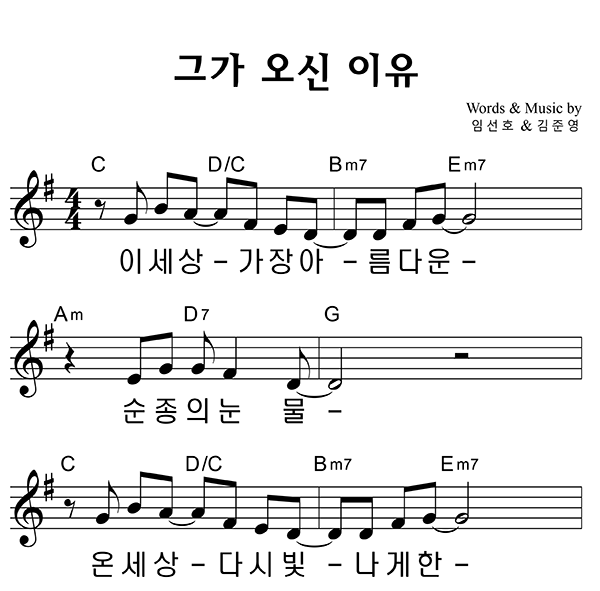 | 그가 오신 이유 | 성가 2부 + 피아노 반주 |