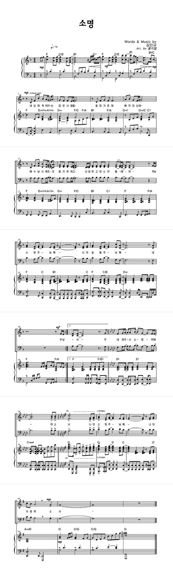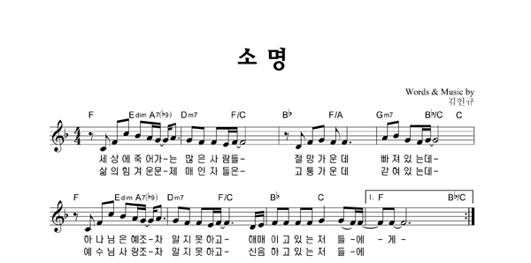 | 소명 큰글씨 | 성가 4부 + 피아노 반주 |