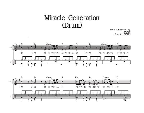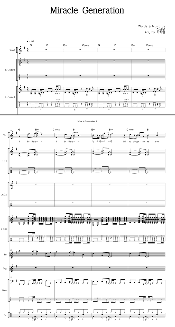 'Miracle Generation' 의 다른 악보형식