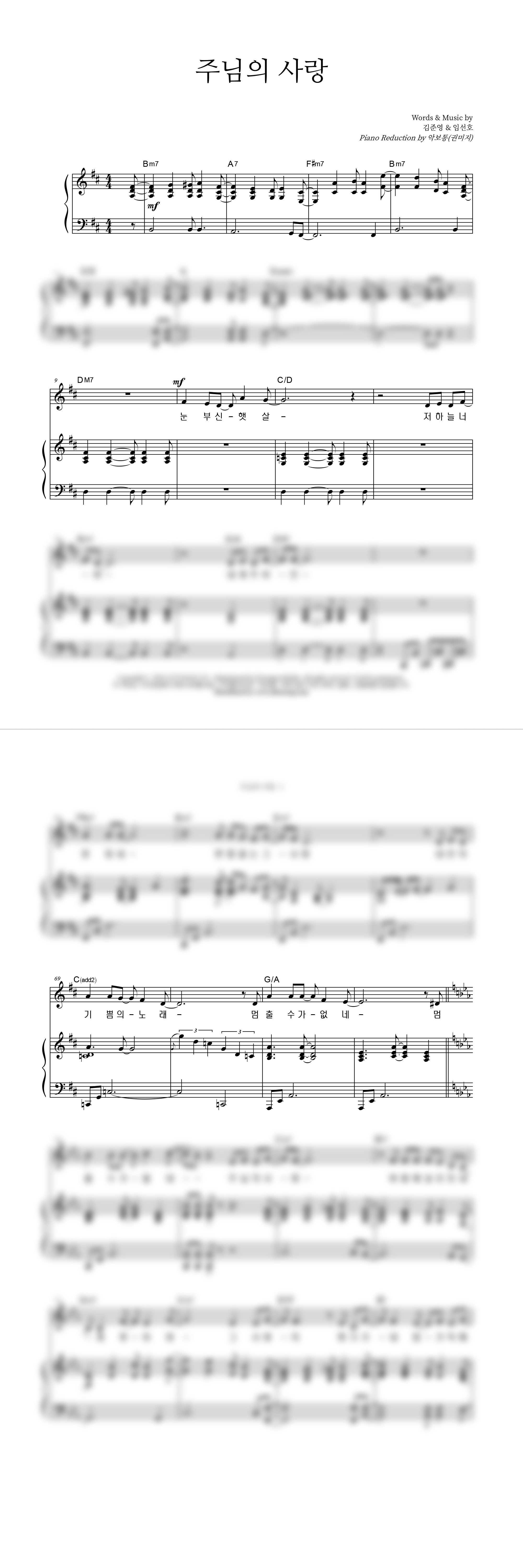 | 주님의 사랑 | 성가 2부 + 피아노 반주 |