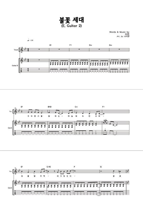 '불꽃 세대' 의 다른 악보형식