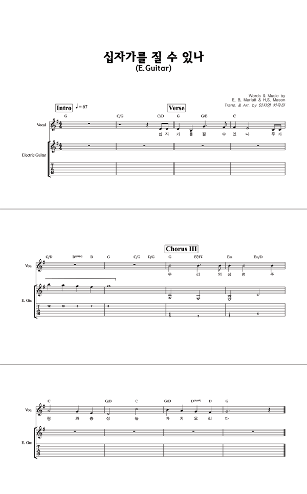 '십자가를 질 수 있나 (찬송가 461장)' 의 다른 악보형식