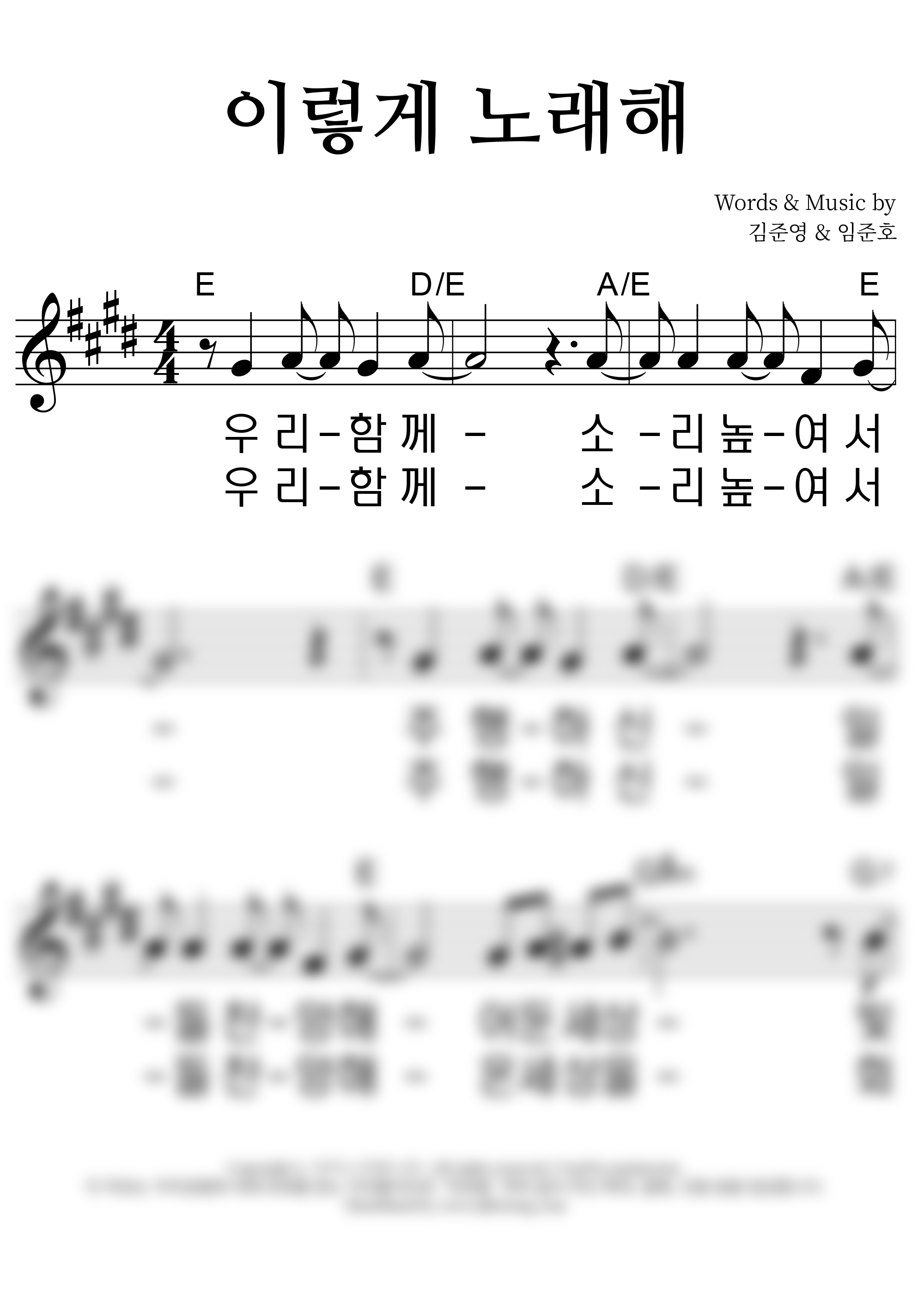| 사랑하셔서 오시었네 | 성가 3부 + 피아노 반주 |